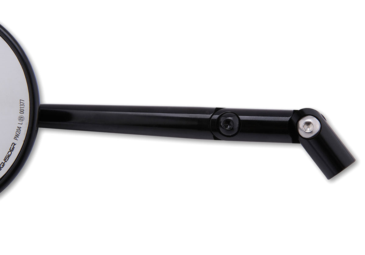 The Highsider 16-L mirror arm extensions for their handlebar mirrors provide better visibility of rear traffic, improving awareness on the road.