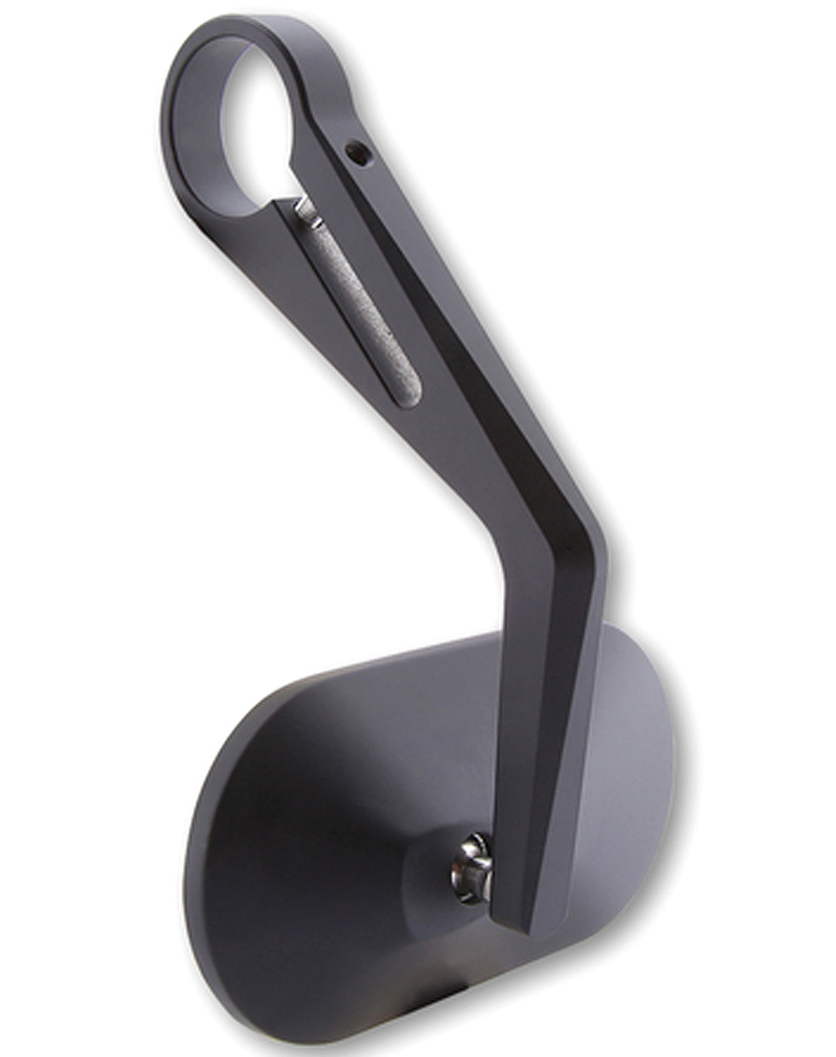 Highsider smart Agila Motorcycle Custom Handlebar End Mirrors with a black finished aluminium body and stem. Have an internal eye diameter of 30mm which fits over our bar end weights specifically for mirrors..