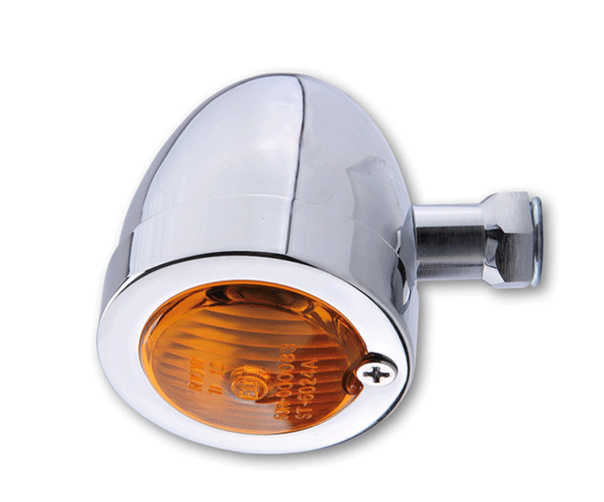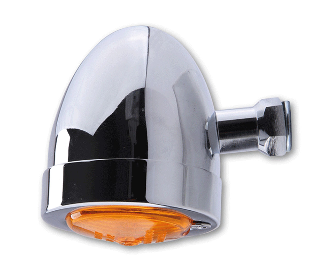 These 12v Highsider smart Bullet Flat Lensed Custom Motorcycle Indicators have a flat faced amber lens and are fitted with a 12v 10w BA15S bulb.