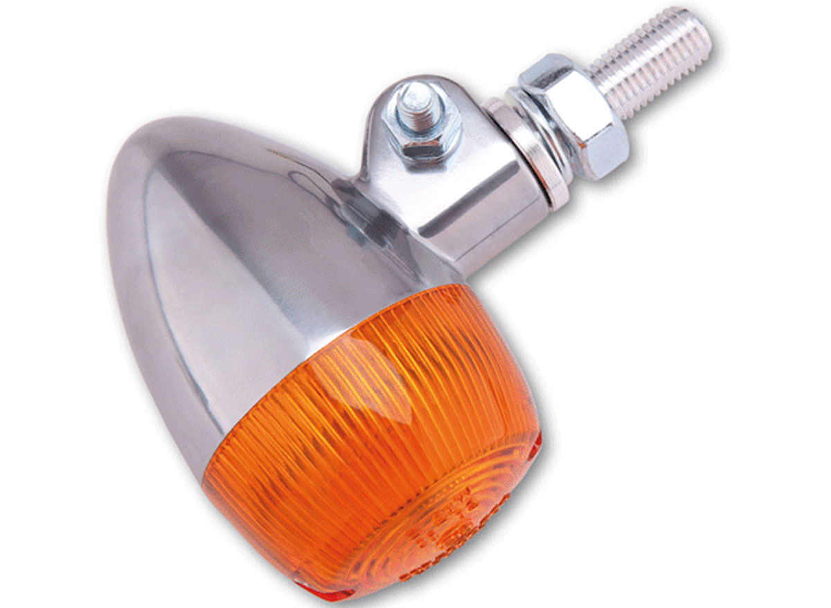 This pair of Highsider smart Bullet Light 1 indicators are a classic mini incicator with a polished aluminium housing and amber lens, E-marked.