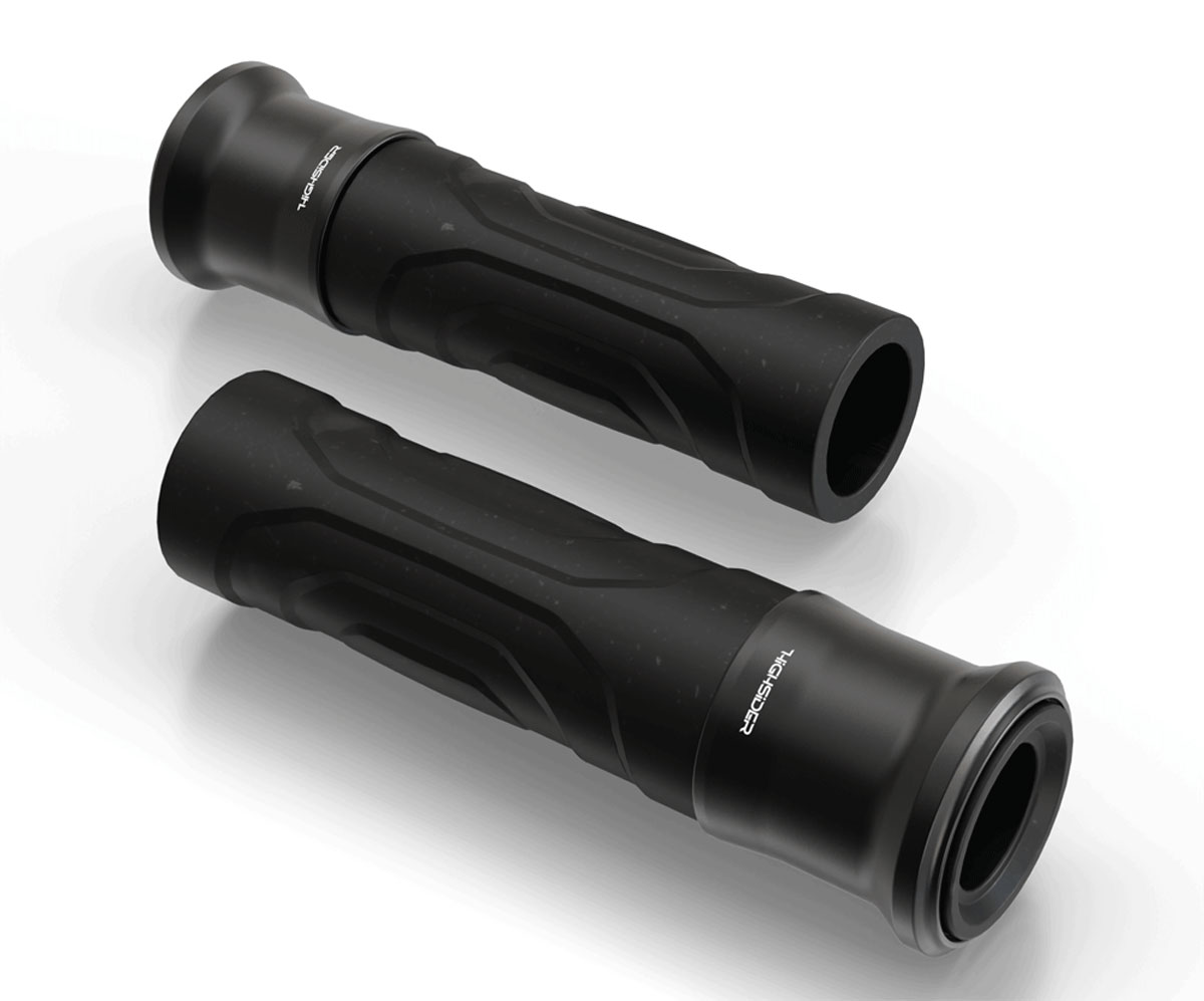 The Highsider Esagano-RS handlebar grips come with black metal inner rings and rubber grip area, with removable endcaps for optional mounting of bar end indicators, mirrors etc. Suited for 7/8 inch (22 mm) handlebars.
