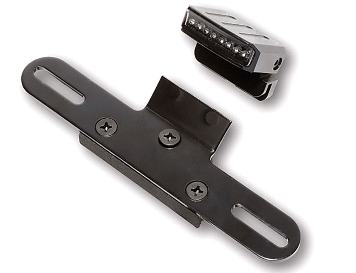 This Highsider smart Move Type 2 Custom Motorbike LED Stop and Tail Light is E-marked, comes in a black metal housing, it has a smoke lens and includes a number plate light and a number plate holder.