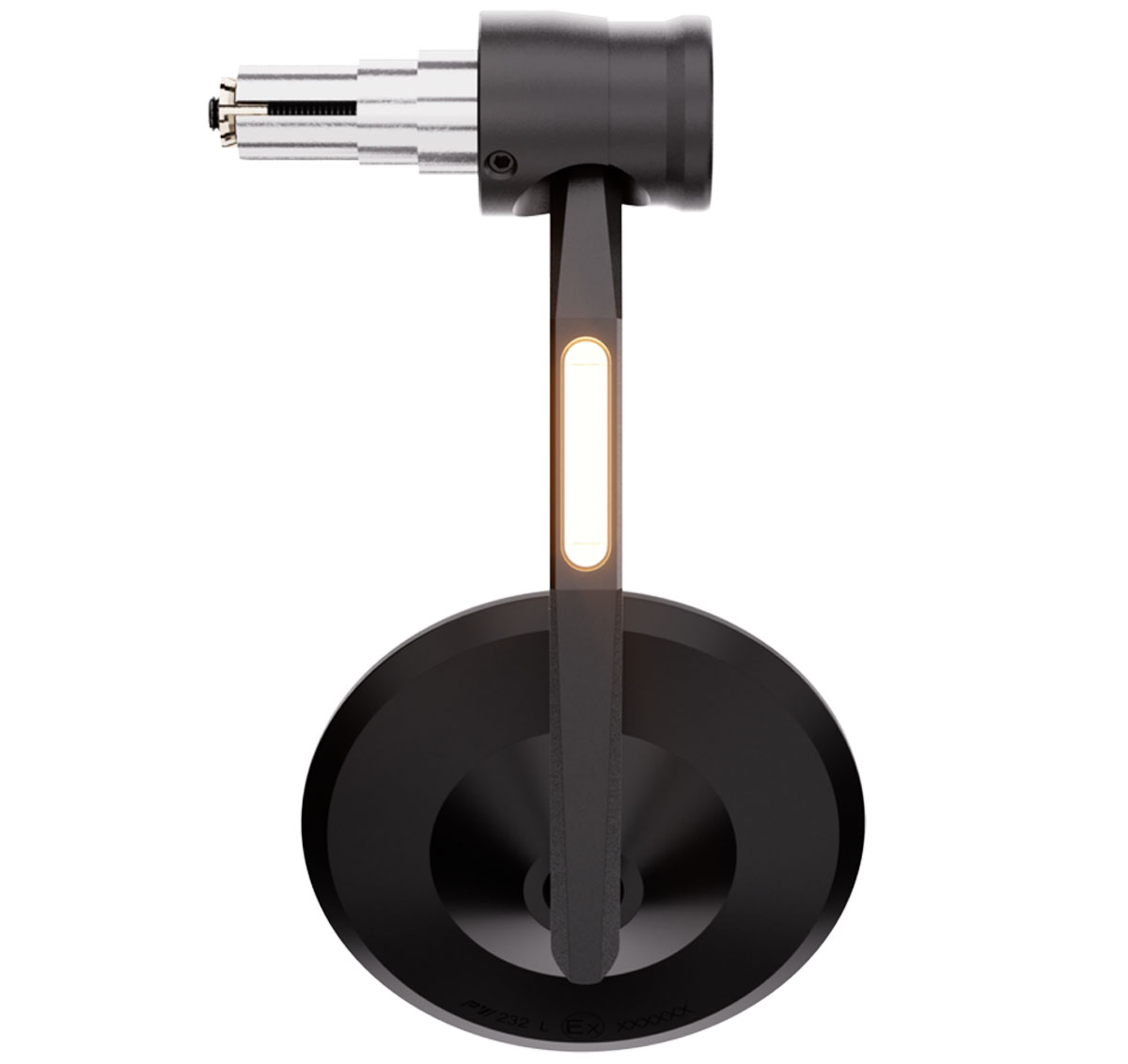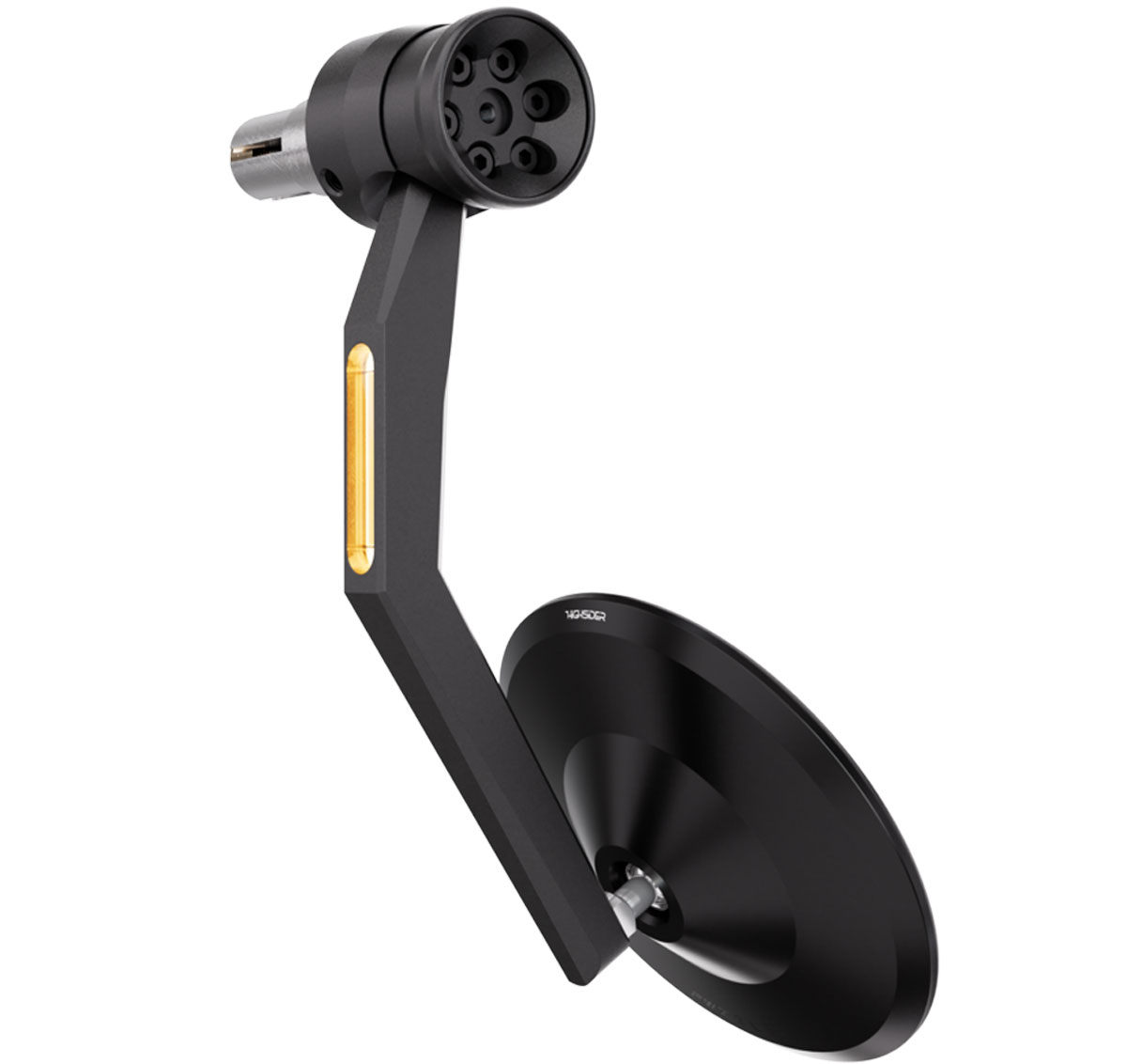 Ball jointed at both ends of the mounting arm for adjustability. Mirror head can be rotated 360 degrees again for adjustability. With 4 easy-to-reach black screws, the direction indicator can be aligned for a wide range of handlebar types in compliance with ECE.