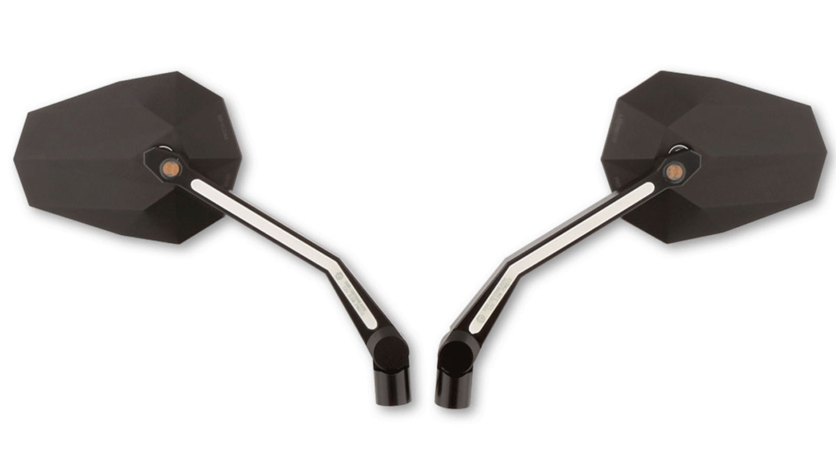These Highsider pro handlebar mirrors STEALTH X4 are E-Marked, they are fitted with a bright LED indicator on the mirror head and glow strip position light in the mounting arm.