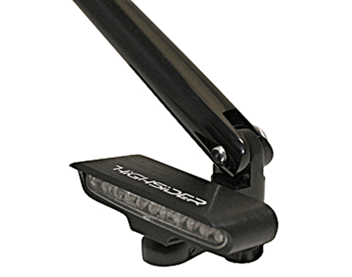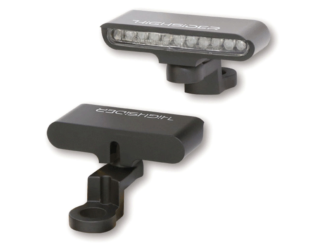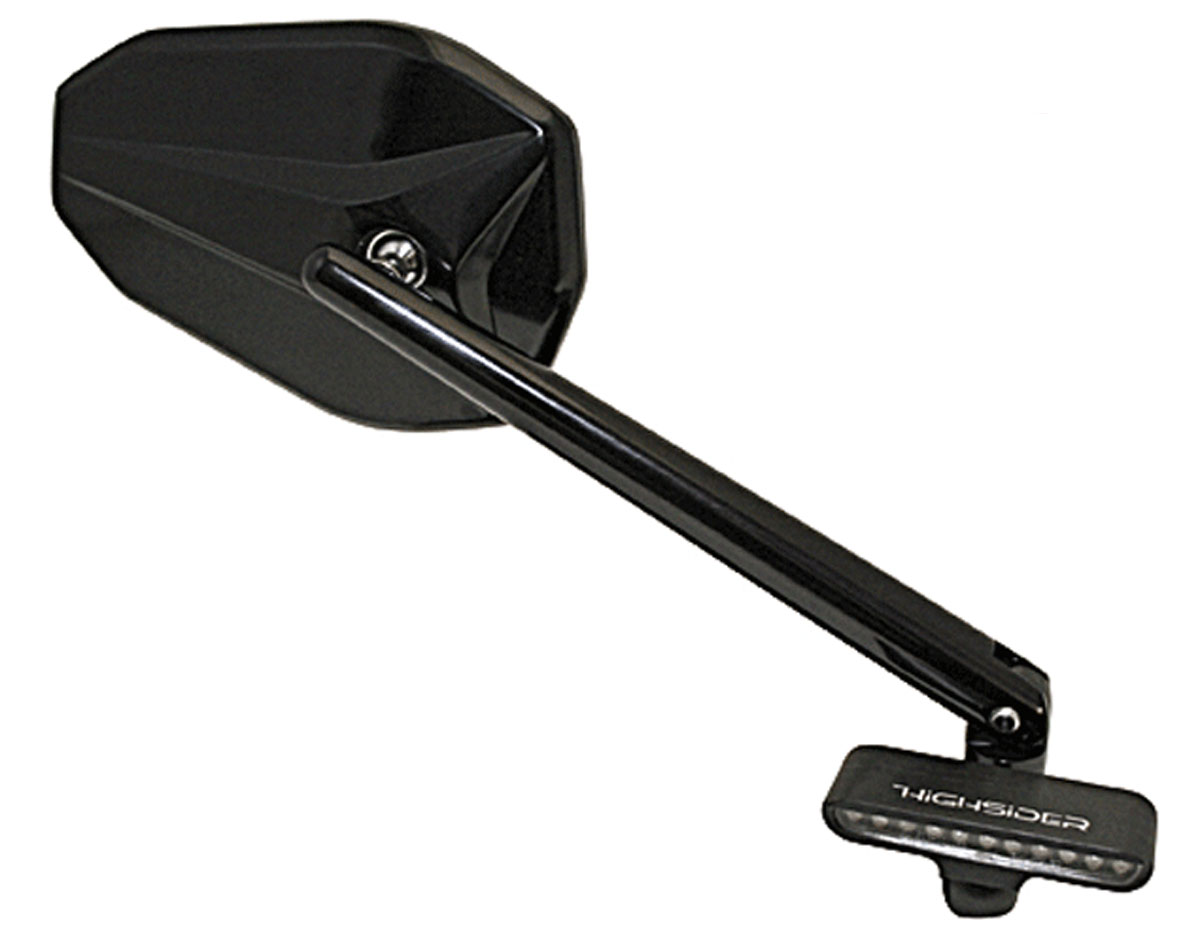 Highsider STRIPE Mirror Mounted Black Aluminium LED E-Marked Motorbike Indicators with an adjustable bracket for base of mirror stem mounting, E-marked