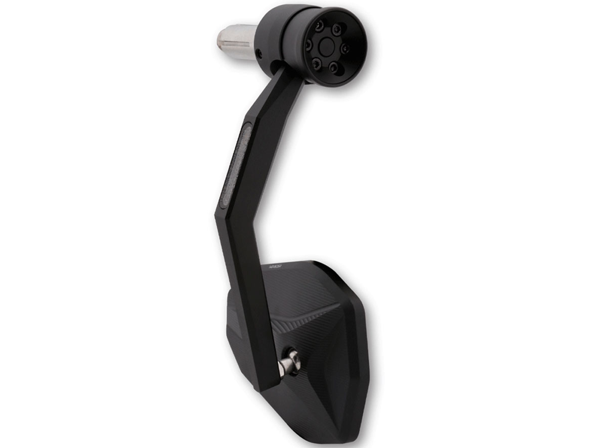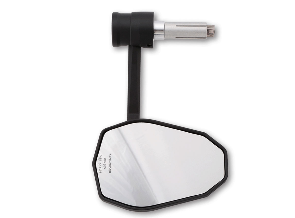 This Highsider Victory-X Rim motorbike bar end mirror features an updated bar end fitting system with a more distinctive design for an even more individual appearance. The revised aluminium mirror arm design stands even more confidently in the wind, and have extremely bright built in SMD indicators (brighter than LED) fully recessed.