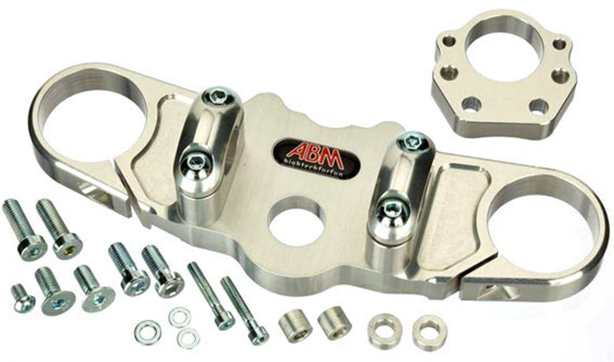 This German made ABM Handlebar or Streetfighter Top Yoke Conversion kit for the ABS version only Honda CBR600RR 2009-12 onwards (PC40 model) is bike specific consisting of a complete replacement BLACK CNC milled top yoke, handlebar clamps, plus all required fittings and fixtures as required.