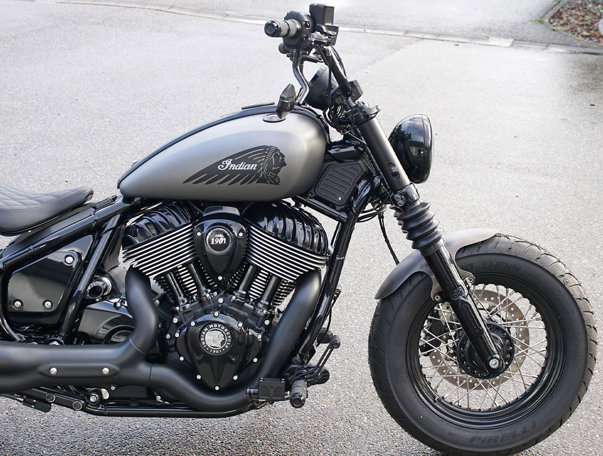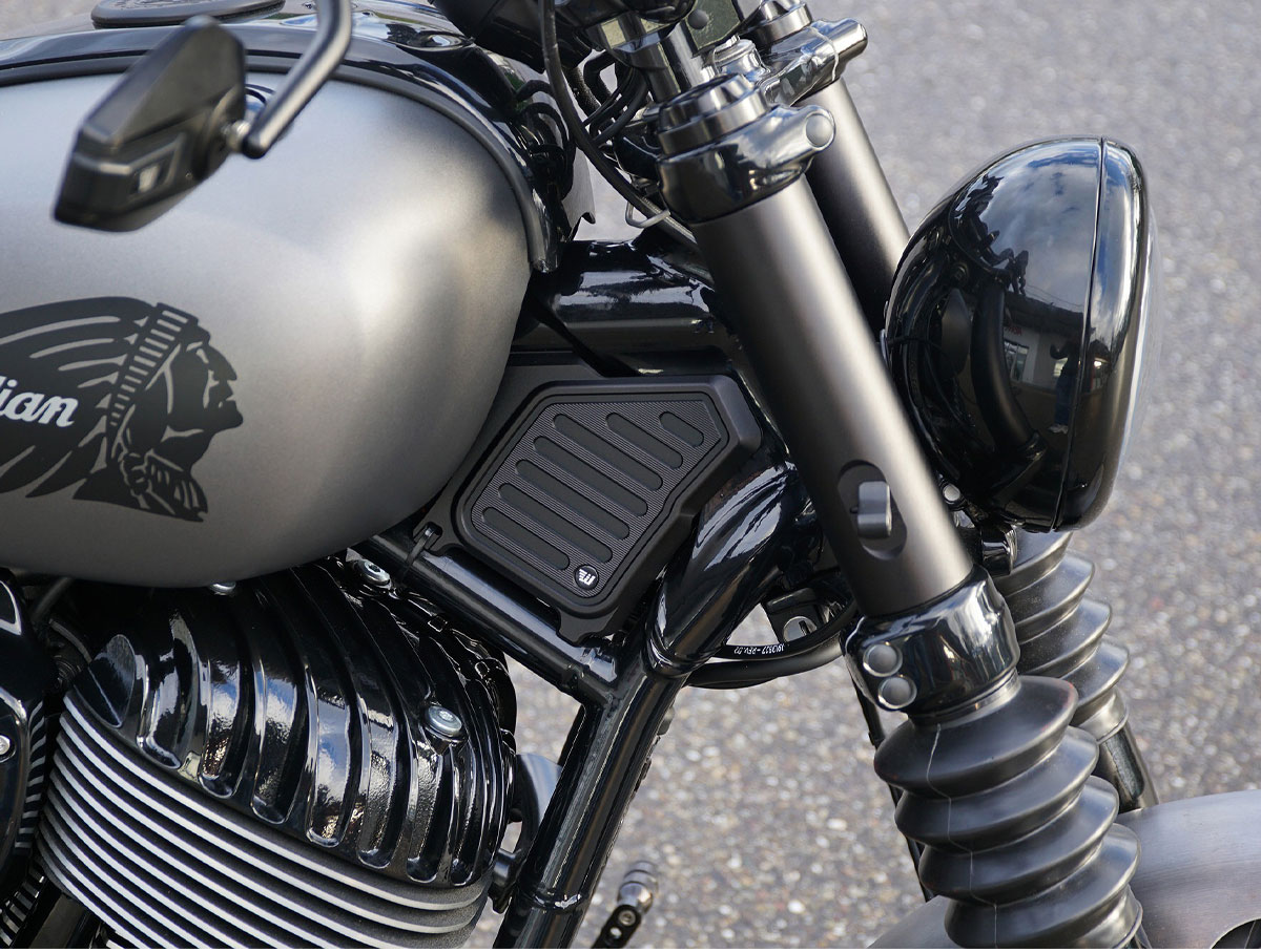 For the Indian Sport Chief 2023 onwards this Wunderkind high-quality headstock frame cover is made of CNC machined and satin black anodised aluminium.