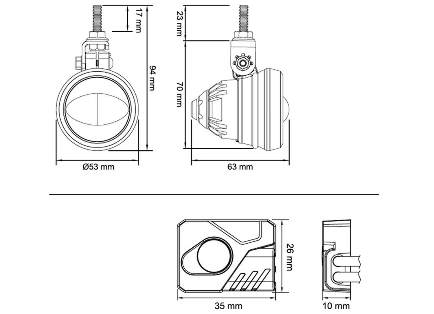 This pair of KOSO AURORA LED fog lights offer a compact, high-performance solution for improved visibility in fog and other adverse weather conditions. With their sleek black aluminum housing and powerful LEDs, these auxiliary lights deliver excellent performance. They are universally applicable and easy to install.