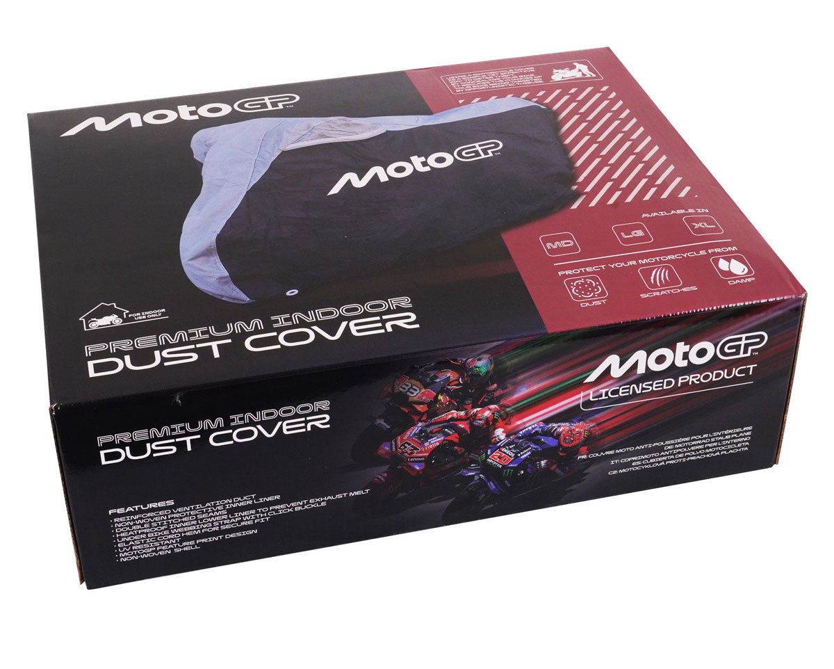 These MotoGP Dust Covers can protect your motorcycle during long-term indoor storage, designed for use in garages and workshops. The lightweight, non-woven construction helps keep dust and dirt off your bike while allowing it to breathe, with added heat-resistant lining for safe use after riding.
