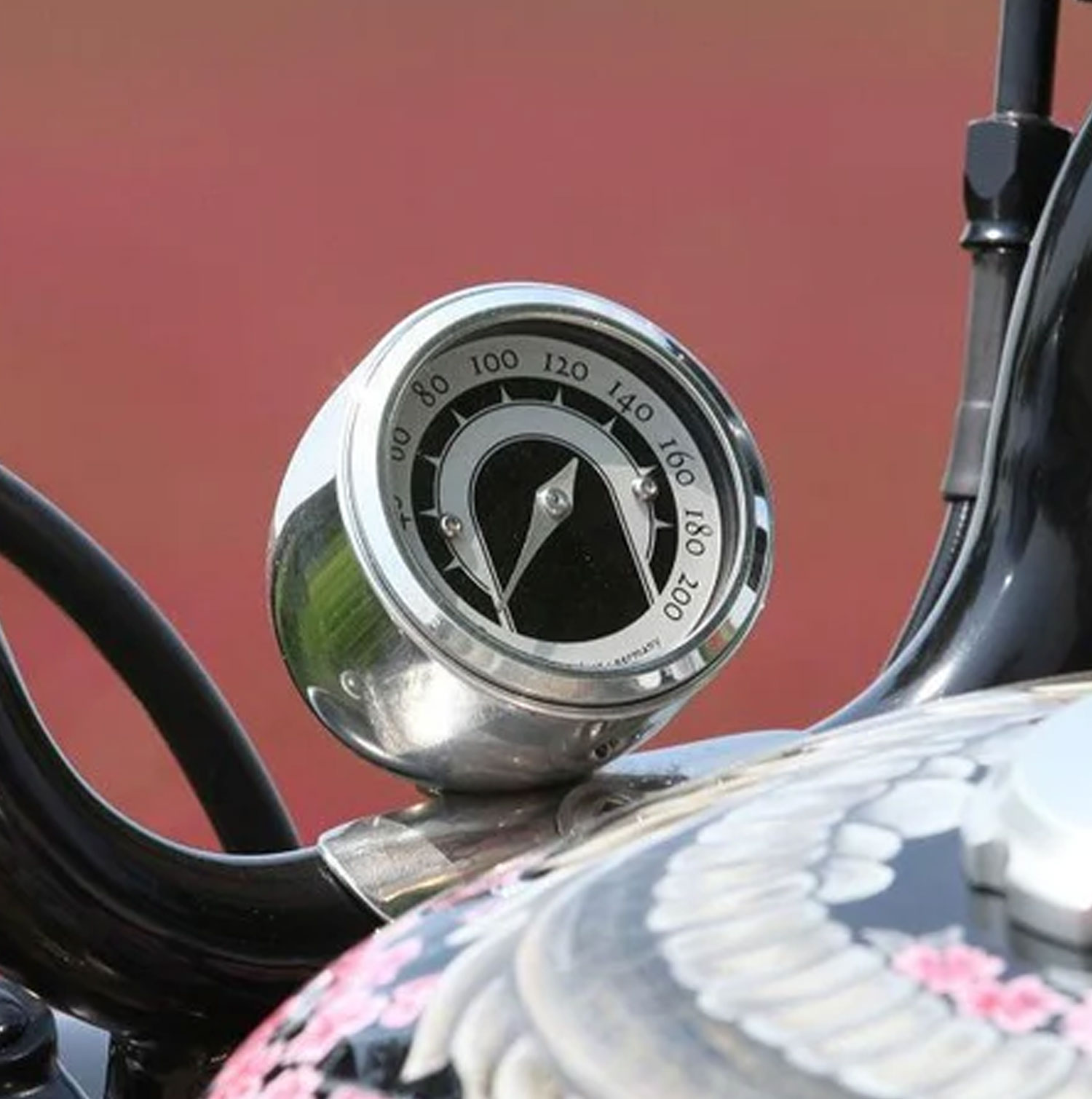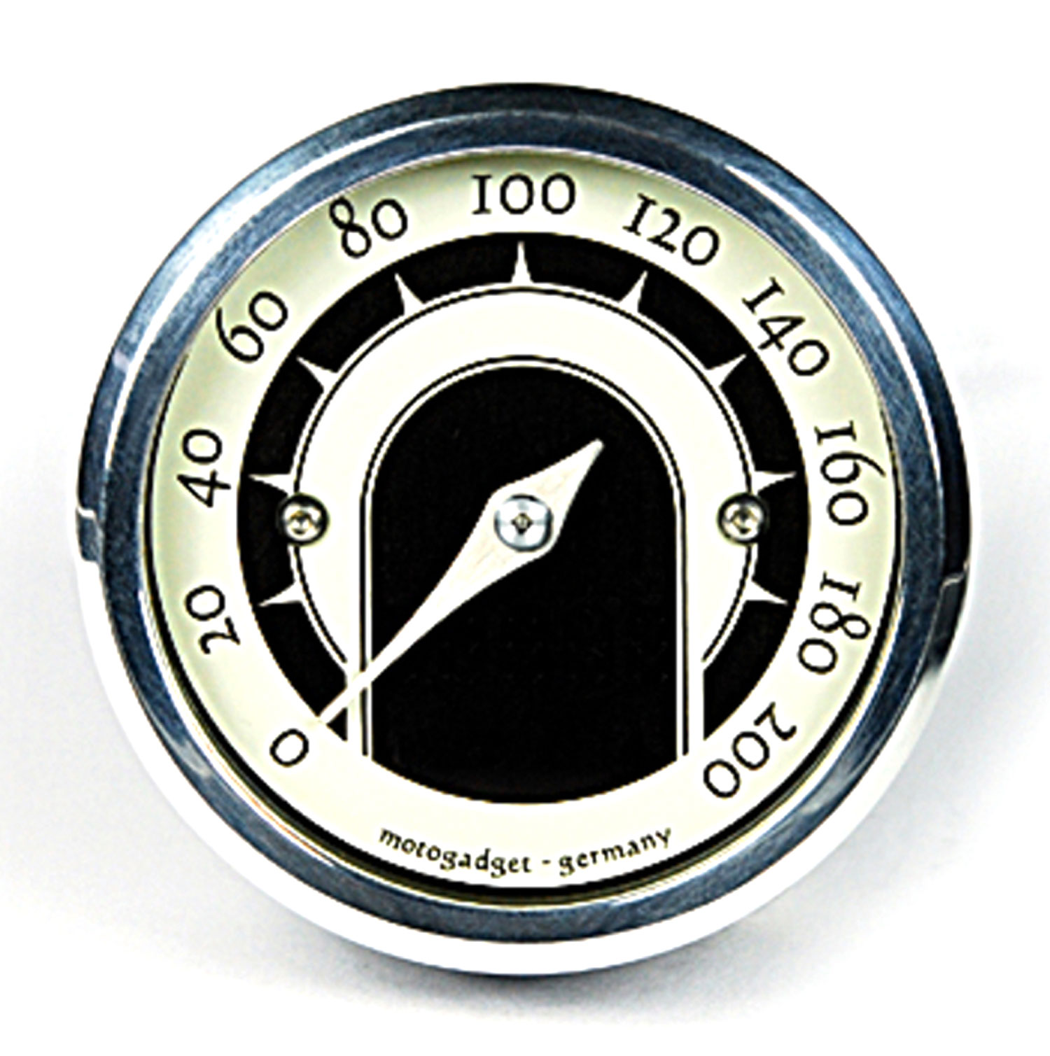 The instrument is technically identical to the motoscope tiny. The dial is based on the streamline designs of the 40's and 50's. The colour is a matching 'warmer' white. The indicator shape is matched to the design of the dial and made from brushed stainless steel. There is a bezel in either 'polished finish' or 'anodized black' available.