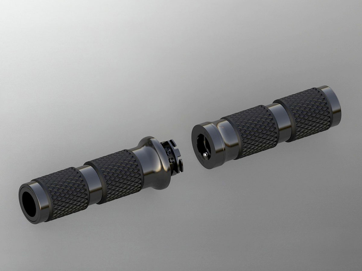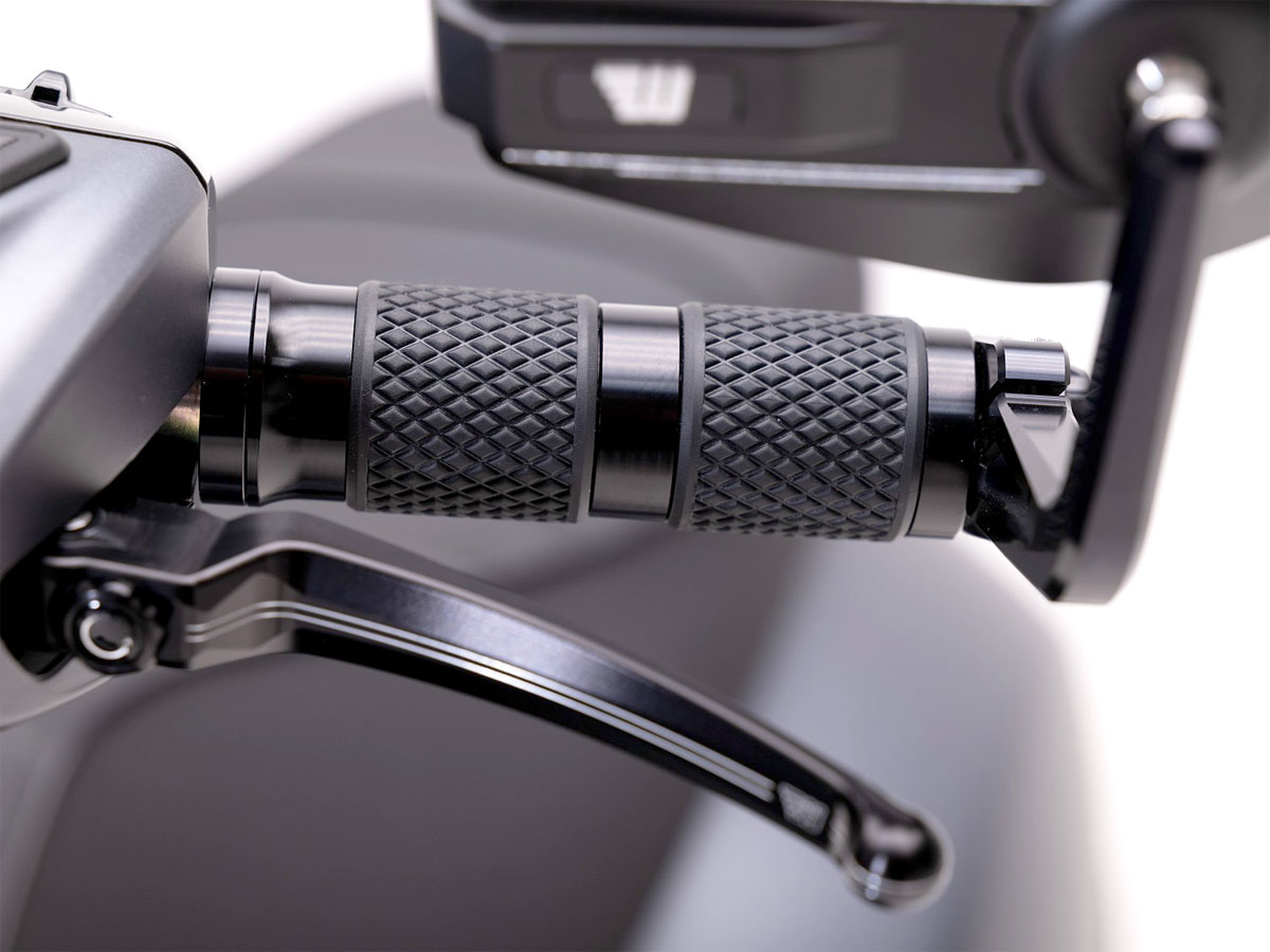 The grips are completely CNC-machined and the surface is anodized in BlackPearl Eloxal black. The ends of the grips can be replaced individually.