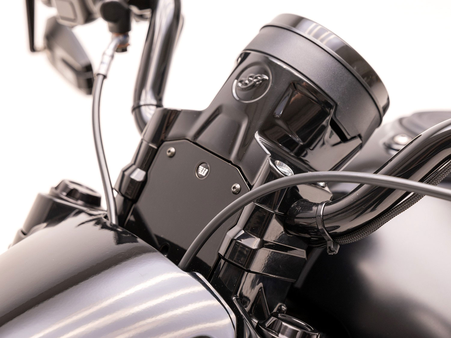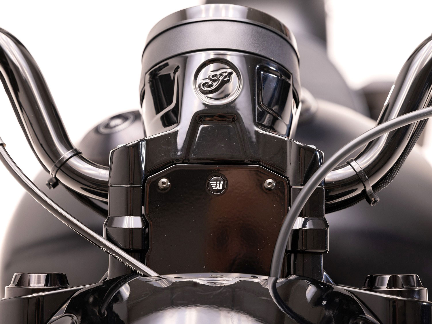 This Wunderkind Indian Scout/Bobber 1130cc (2017-23)/Sixty Handle Bar Risers and cable cover positions the handlebars 30 mm higher on the original triple tree. Due to the ingenious construction the elevation is not visible with the insert sitting between the original risers two halves.