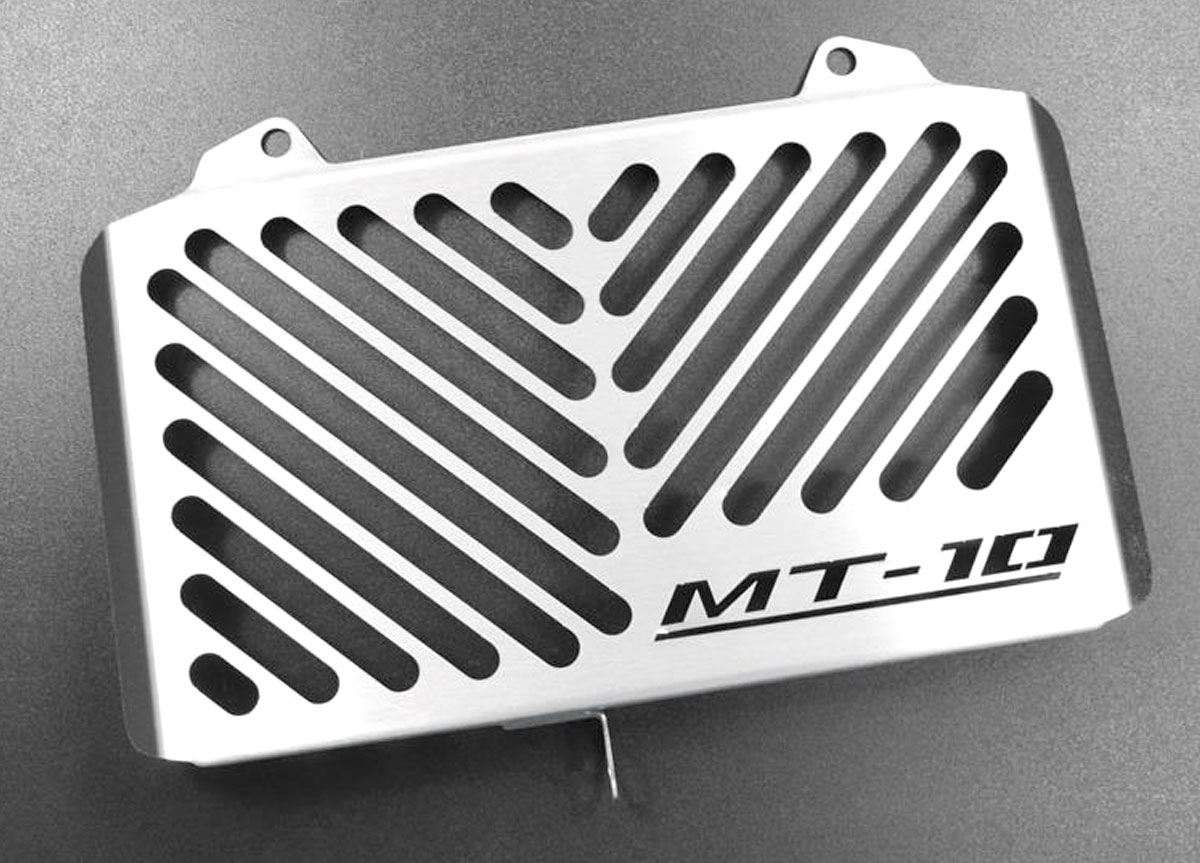 Zieger oil cooler cover to fit the Yamaha MT-10 2016-23 RN45 models and constructed from high quality stainless steel in a powder coated black or brushed stainless finish, these covers provide essential protection from flying debris & stones on the road.