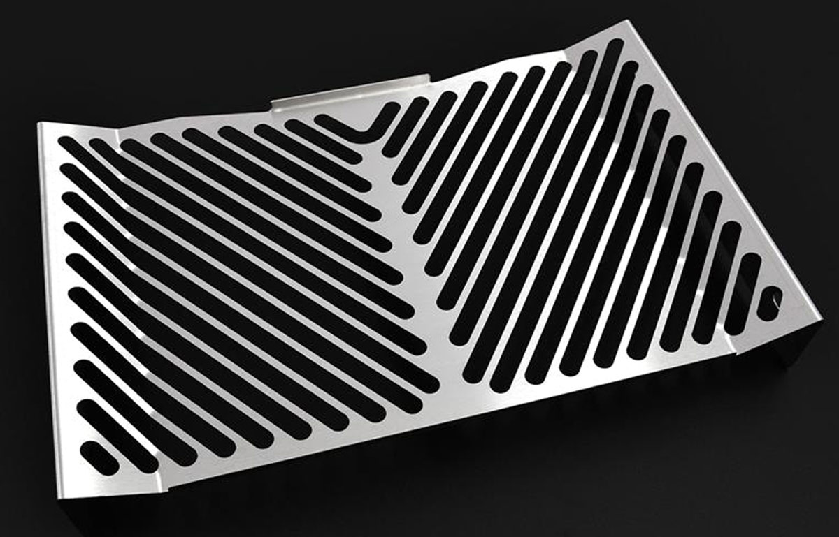 For the Yamaha V-max 1985-06 this Zieger Radiator Cover Guard is stainless steel in either a brushed stainless finish or black powder coated, with or without a 1200 logo detail.